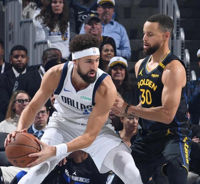 库里同儿子卡农观看独行侠比赛,卡农:汤普森上场了你咋在这